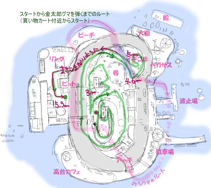 花壇3つよりこっちのがいいと思う(金太郎グマ弾き飛ばしの場合はここを通るとピットで5m50cmを超えてしまうかも><