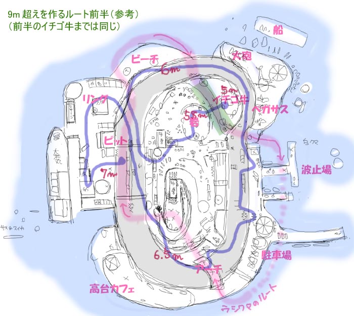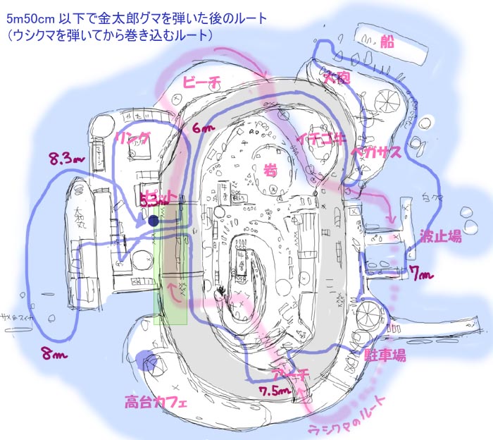 ■ウシクマを弾き飛ばさず一発で巻き込む9m超え(妄想)ルート前半